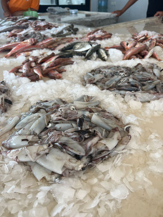 Canlı hayvan yok. Ancak tüm ürünler taze. Döneme göre çok bol bir şekilde barbun, kalamar, sübye çeşitleri bulunuyor.